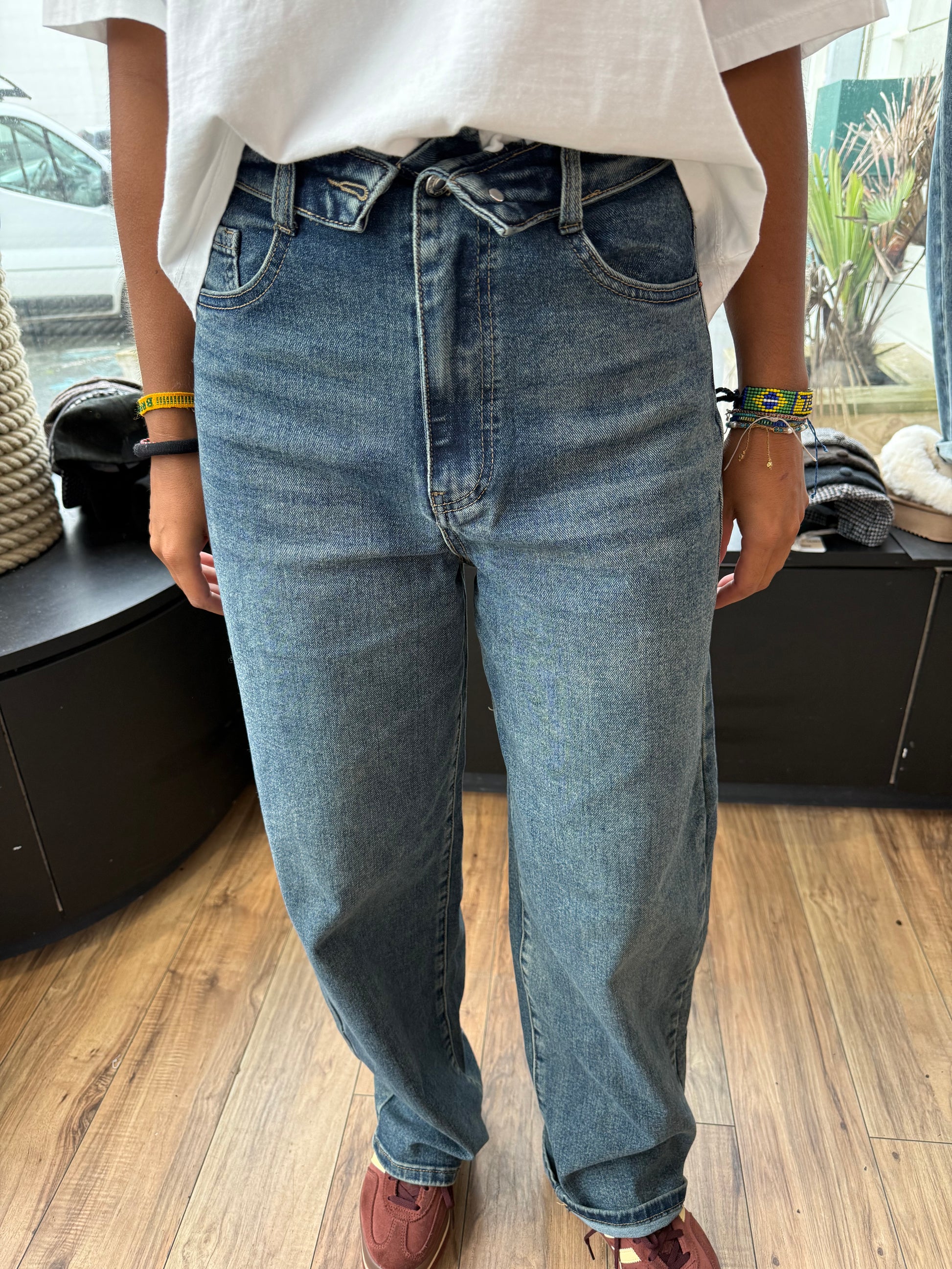 Denim Barrel délavage moyen presenté avec le tshirt .MILAN