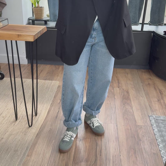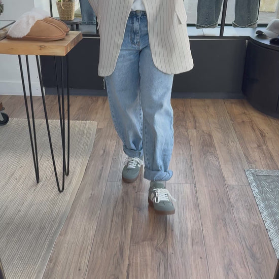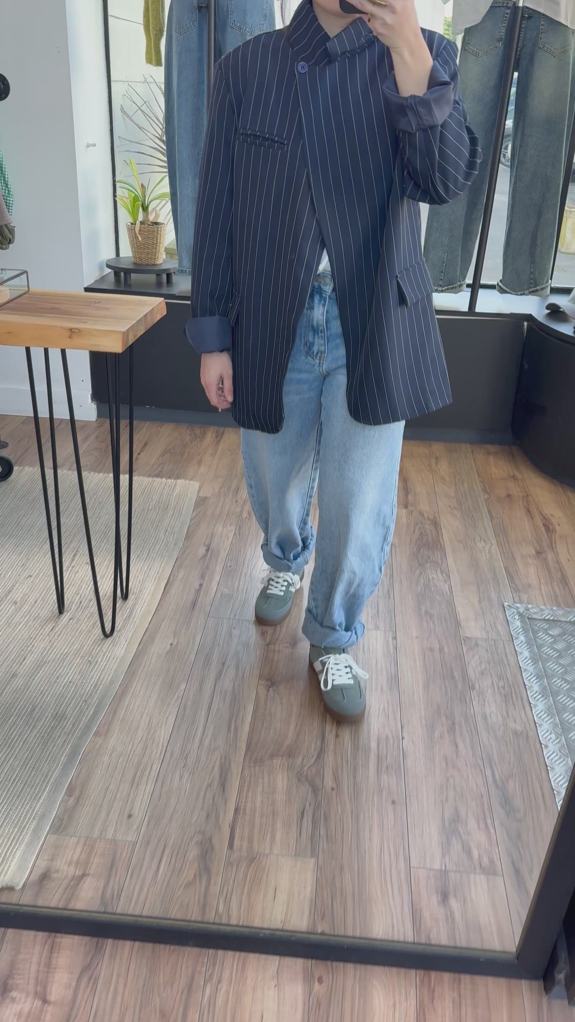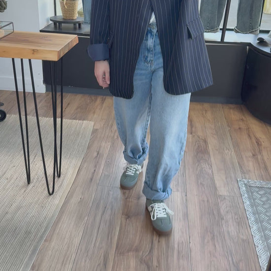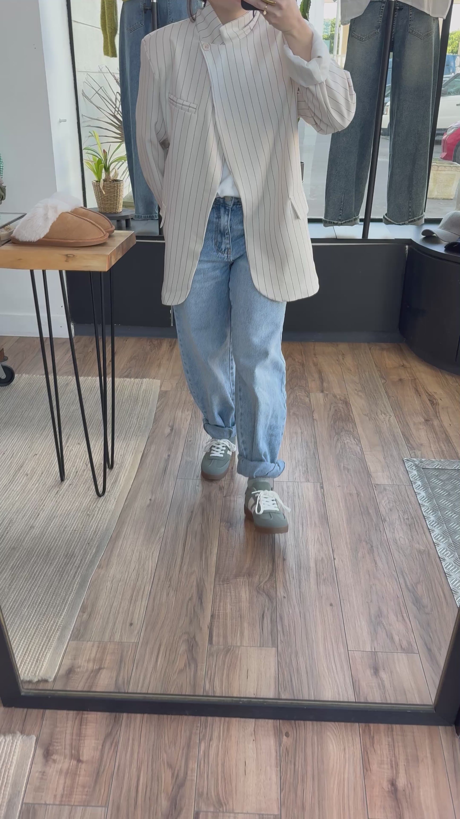 Veste printemps légère à rayure et unie , présenté ici avec le DENIM . Charlie et le t-shirt. Milan blanc