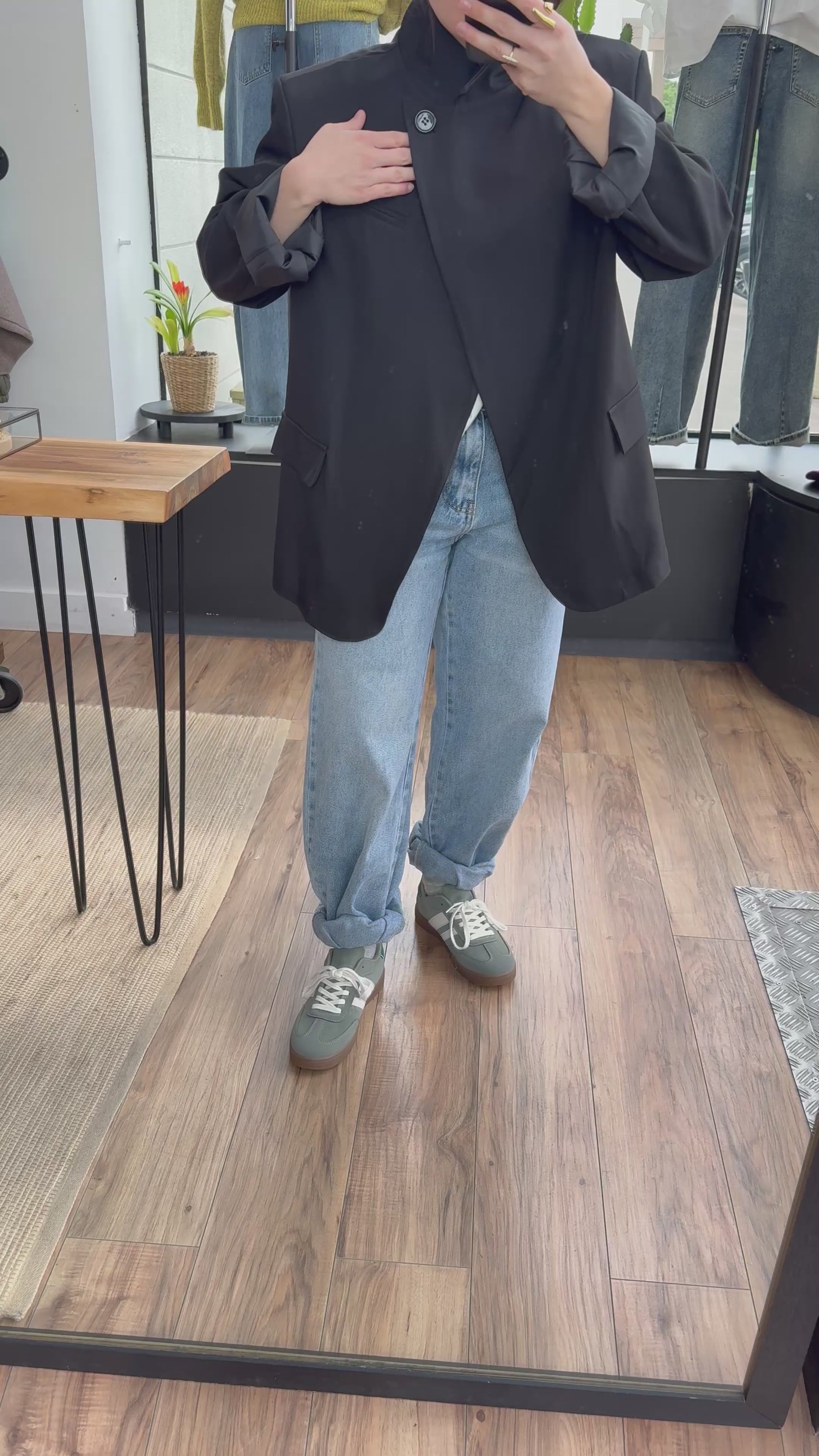 Coupe: classique oversize col asymétrique avec épaulettes fausses poches