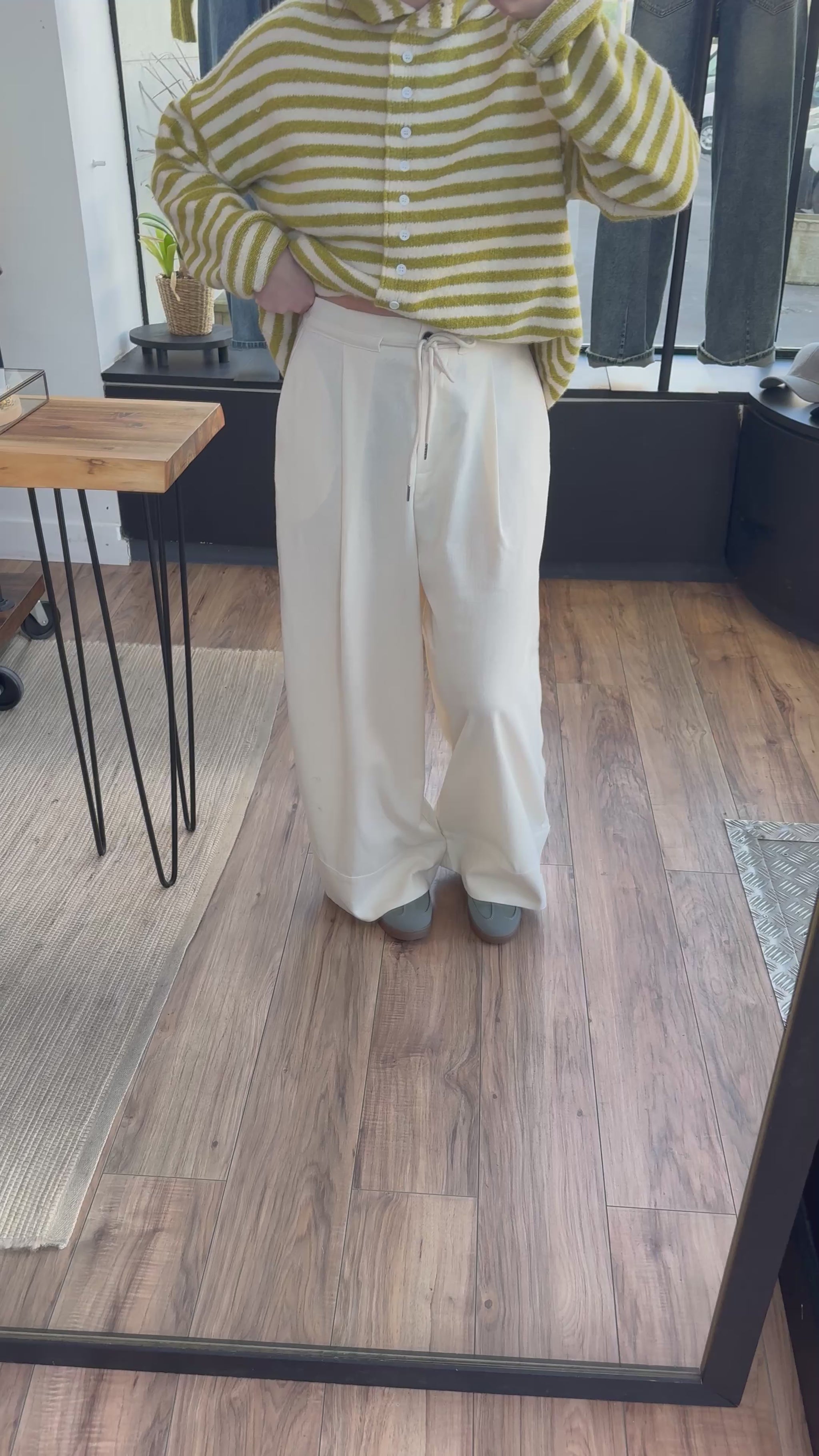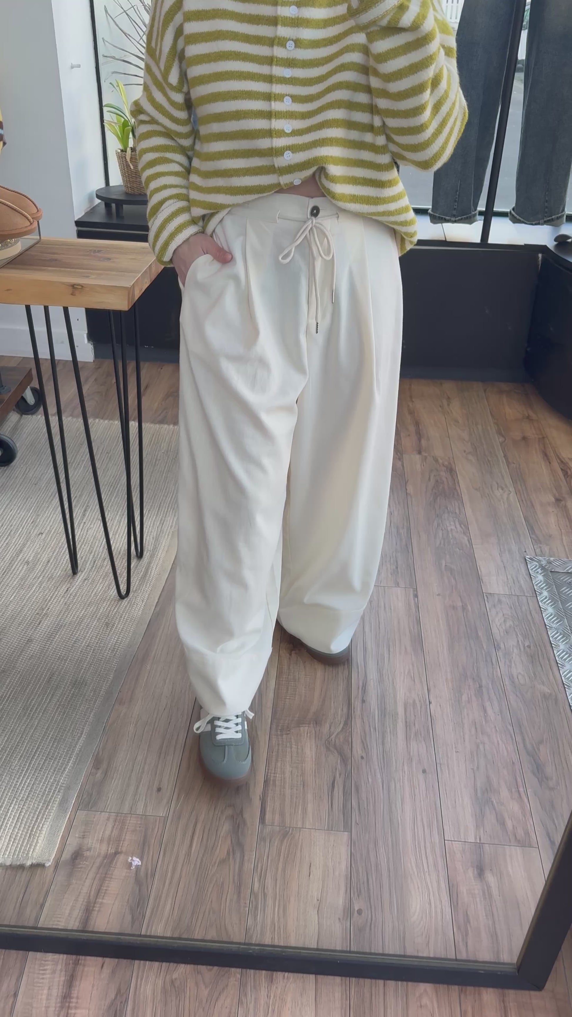 Pant printemps léger , présenté ici la maille Pierre olive